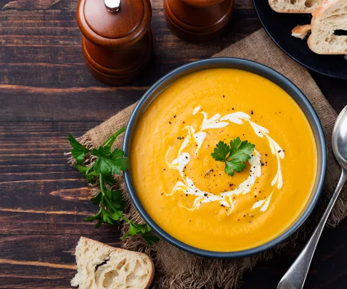 Soup can last up to three months in the freezer, so make a huge batch on a rainy day and feast on it for weeks! There are a few important things to remember when you are freezing soup: firstly, if your recipe says to add a swirl of milk or cream, wait until you have reheated your soup and are ready to eat to prevent the dairy from separating when it defrosts. It’s also important to leave your soup to cool completely before freezing, and always freeze it in portions that will be convenient to defrost. Finally, remember that liquids expand when they freeze – so ensure you leave a good inch of extra room in your container or bag!