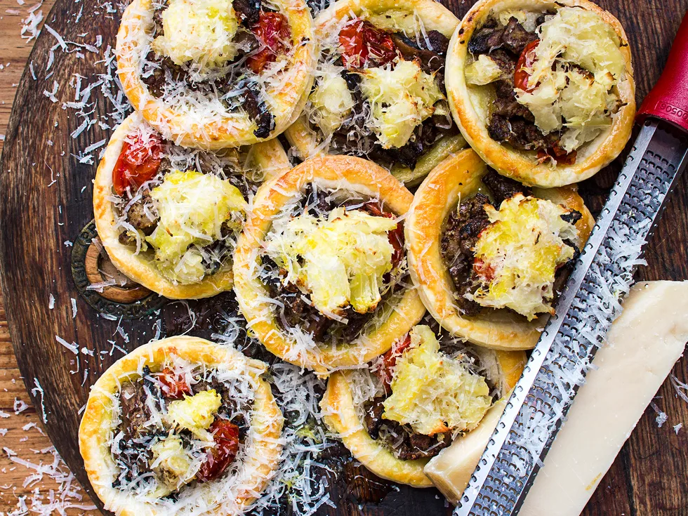 7.Cook for 12 minutes, remove from oven and grate a little extra parmesan over pies to serve.