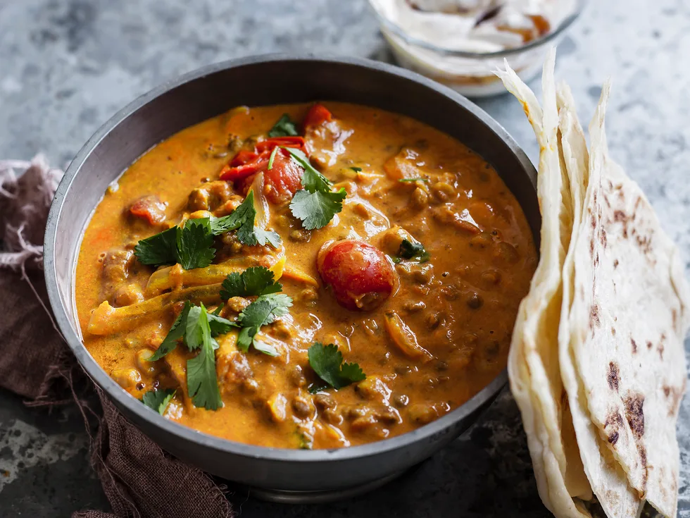 Serve dhal with yoghurt, topped with coriander.