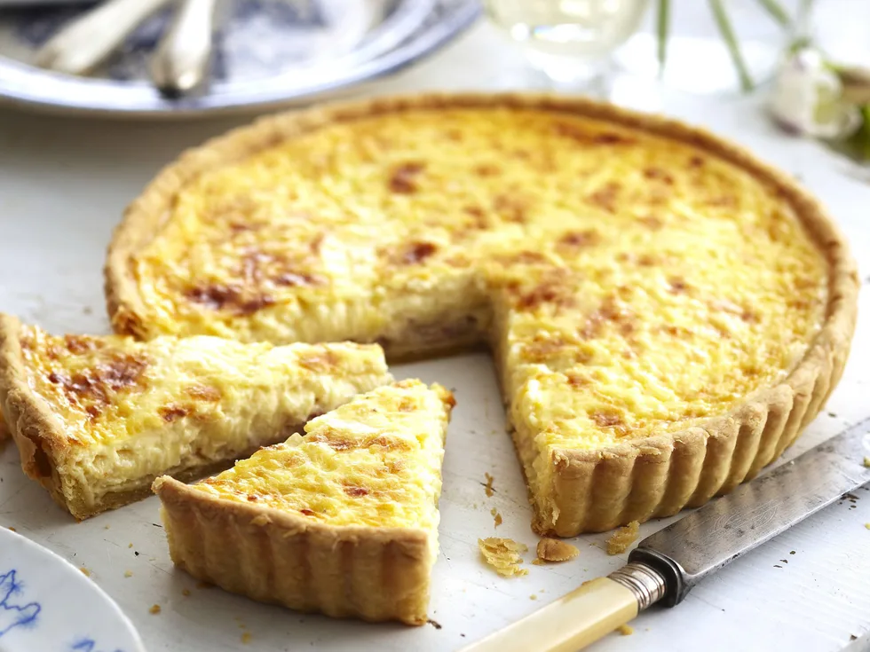 9.Bake at 180°C about 35 minutes, or until filling is set and brown. Stand quiche 5 minutes before removing from tin.