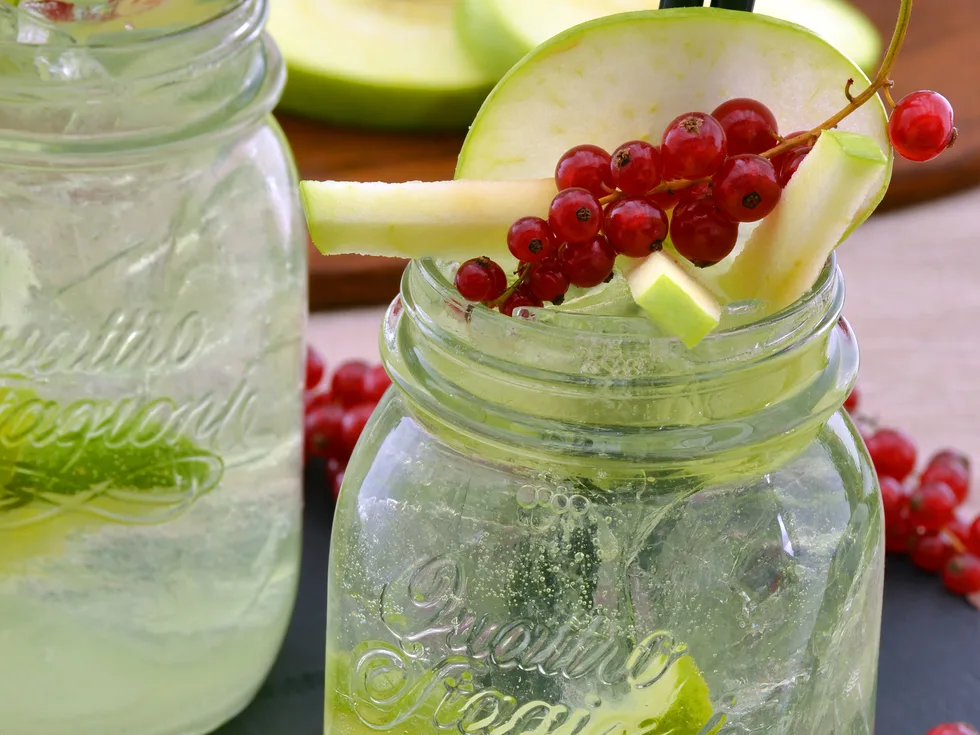 2.Add lemon juice and garnish with apple slices and cranberries.