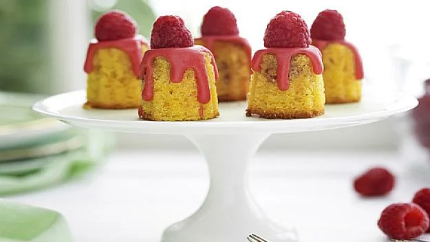5.Spread cold cakes with icing; top with fresh raspberries. Uniced cakes suitable to freeze. Not suitable to microwave.
