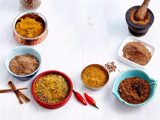 Combine 1 tablespoon cumin seeds, 2 teaspoons each dried parsley, dried oregano, ground turmeric, white peppercorns and 1 teaspoon crushed chilli flakes. Grind to a powder. Use as a dry rub for meats, in marinades or to flavour soups, braises and seafood.